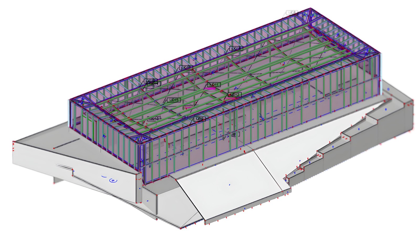 În urma analizei în SCIA Engineer, detaliile structurale ale proiectului au fost transferate fără probleme în Allplan. Această tranziție a facilitat definirea precisă a etapelor de construcție, a cantităților și a altor specificații, culminând cu un document în format IFC care a oferit un model 3D pentru vizualizare și ajustări iterative.